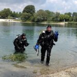 Die Theorieprüfungen sind geschafft – zwei aufregende Wochenenden standen uns bevor. Keine Übungen mehr im fast 4 Meter tiefen Stadionbad in Ludwigsburg. Für uns ging es ins 100 km entfernte Plittersdorf. Rein in den kalten See – bereit, endlich loszulegen ohne wirklich zu Wissen was einen genau erwartet. Für die meisten unter uns, war es das erste Mal Tauchen im Süßwassersee. Am Deglersee angekommen hieß es erstmal auspacken, Sachen sortieren und Tauchausrüstung korrekt montieren. Alles unter den wachsamen Augen der anwesenden Tauchlehrer. Denn damit begann auch schon unsere erste Übung. Gemeinsam gab es ein ausführliches Briefing über das Gewässer an dem wir uns befanden. Wichtige Informationen über Temperatur, Fischbestand, Laichgebiete und Besonderheiten unter Wasser. Danach ging es dann richtig los! Die Gruppen wurden eingeteilt und dann 1:1 mit dem Tauchlehrer das Gewässer erkundet. Es war unglaublich wie an diesem Tag sich die Sonne unter Wasser gespiegelt hatte und durch das nach oben wachsende Schilfgraß schien. Überall schwammen kleine Fischschwärme um uns herum, ohne große scheu. Die Sicht war erstaunlich gut, in klaren Bereichen konnte man sogar mehrere Meter weit sehen. Und da gingen die Übungen auch schon weiter – Handgriffe und Abläufe die jeder Taucher beherrschen muss. Unteranderem Maske fluten – Maske absetzten – ruhig durch die Nase ausatmen- Maske aufsetzten und ausblasen. Dann ging es zurück an die Wasseroberfläche, dicht am Tauchlehrer. Zurück bei der Gruppe wurden die ersten Erlebnisse und Sichtungen unter Wasser ausgetauscht. Die einen hatten schon erste große Fische entdeckt und alle redeten von den großen 2 Meter Welsen die anscheinend dort unten leben sollen. Natürlich gab es dann noch ein ausführliches Debriefing mit Tauchlehrer. So vergingen die Stunden. Tauchanwärter und Tauchlehrer tauchten in verschiedenen Gruppen und Konstellationen ab, erkundeten das Gewässer und hielten die verschiedenen Übungen ab. Tarieren in unterschiedlichen Tiefen – kontrolliertes Auftauchen – das Geben und Annehmen von Luft – das gemeinsame Auftauchen – die Rettung eines handlungsunfähigen Tauchers und noch weitere. Natürlich war auch hier der Spaß immer im Vordergrund. Der Fokus lag nie nur auf den Übungen, sondern darauf einen schönen und interessanten Tauchgang zu haben, bei dem man viele Erfahrungen sammeln konnte. Und das nicht genug: Eine Gruppe tauchte auf und erzählte von der Sichtung des 2 Meter Welses. Alle konnten es kaum glauben. Doch tatsächlich hatte sich der große Wels gleich zweimal an diesem Wochenende gezeigt. Wirklich atemberaubend so ein großes Tier unter Wasser zu erleben. Die Tauchgänge ziehen so vorüber und eine Übung nach der anderen wurde abgehakt und abgestempelt. Gegen Ende machte sich schon bei dem ein oder anderen die Müdigkeit breit. Nach 6 Tauchgängen an einem Wochenende kann das schon mal passieren. Doch bereits an einem Wochenende hatten ein paar alle Übungen bestanden und konnten jetzt schon feiern. Die anderen durften am darauffolgendem Wochenende nochmal zeigen, was sie im Stadionbad gelernt hatten. Denn hin und wieder kam es auch vor, dass Übungen wiederholt werden mussten. Die Tauchlehrer waren hier alle sehr genau. Denn das was wir hier lernen, machen wir nicht nur um unsere Tauchprüfung zu bestehen, sondern kann im Ernstfall auch Leben retten. Da ist man schon sehr bedacht gewesen, dass die Übungen sorgfältig und korrekt ausgeführt werden. Doch am Ende des zweiten Wochenendes wurde stolz angestoßen – alle hatten die Prüfung bestanden und können sich nun stolz einen Taucher mit der Qualifikation GDL* nennen. Zwei wirklich anstrengende und unfassbar spannende Wochenenden mit wochenlanger Vorbereitung gingen zu Ende. Doch nun kann es erst richtig losgehen – denn die ersten Tauchgänge werden von dem ein oder anderen schon geplant. Was wir wohl dabei alles erleben werden….