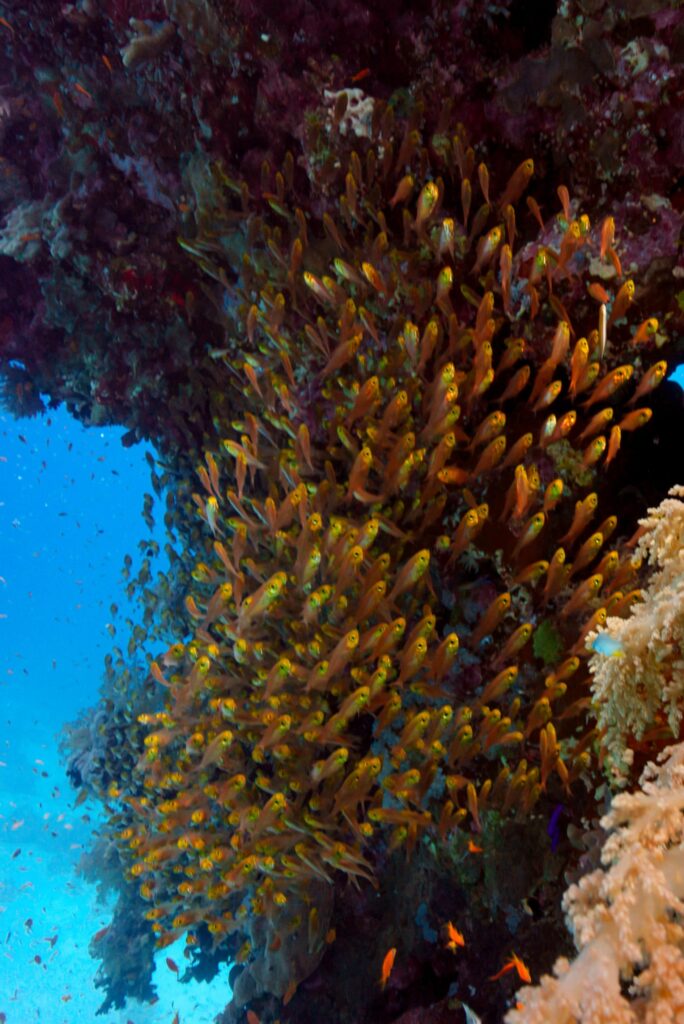 Bei zahlreichen schönen Tauchgängen und angenehmer Wassertemperatur von 28 Grad, konnte die faszinierende Unterwasserwelt des Roten Meeres bestaunt werden. Besondere Highlights waren: die neugierigen Delphine, die zerklüftete, vielfältige Unterwasserlandschaft des Hausriffs mit Canyons und Tunneln zum Erkunden, tolle Schwärme von Großmaulmakrelen und Glasfischen und der Tagesausflug nach Abu Dabab zu den Schildkröten und dem schönen, intakten Riff.