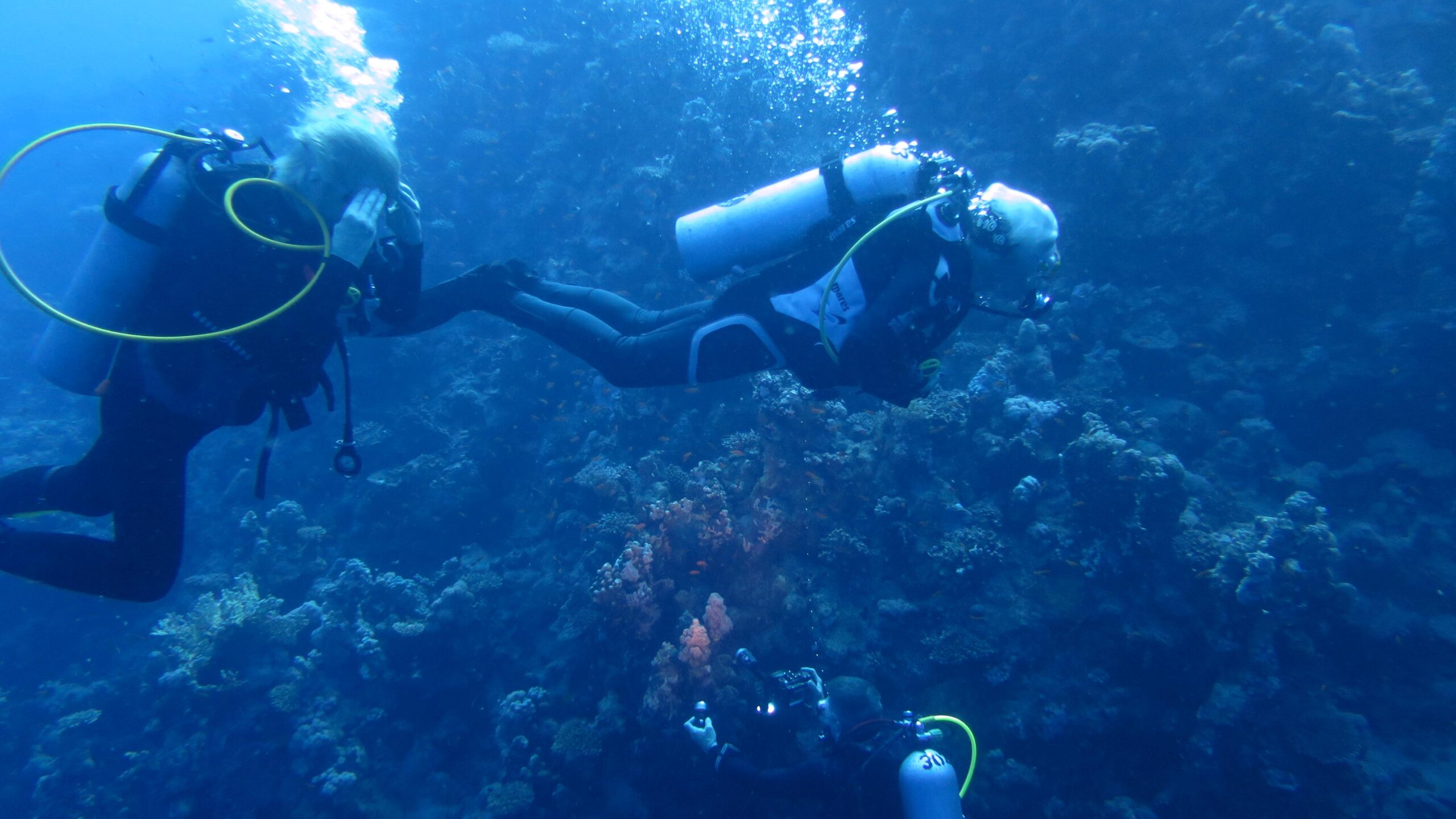 Bei zahlreichen schönen Tauchgängen und angenehmer Wassertemperatur von 28 Grad, konnte die faszinierende Unterwasserwelt des Roten Meeres bestaunt werden. Besondere Highlights waren: die neugierigen Delphine, die zerklüftete, vielfältige Unterwasserlandschaft des Hausriffs mit Canyons und Tunneln zum Erkunden, tolle Schwärme von Großmaulmakrelen und Glasfischen und der Tagesausflug nach Abu Dabab zu den Schildkröten und dem schönen, intakten Riff.